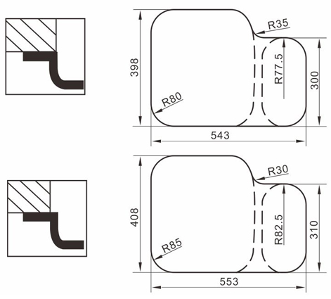 水槽四邊條采用一次成型的折彎加強筋工藝,雙倍堅固,承重力更強,解決了普通焊接工藝容易出現的凹點、脫焊、易割手等問題。專業配置的密封條和固定夾,安裝平整度高,不滲水,不松動