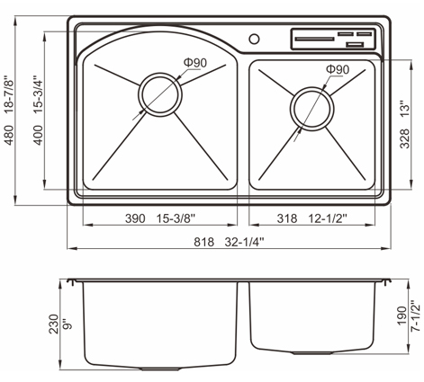 槽底采用斜面壓痕,四輻導(dǎo)流槽設(shè)計(jì),與平面壓痕和無痕水槽相比,導(dǎo)水更為流暢,下水更迅速,能有效防止積水,消除沉淀物