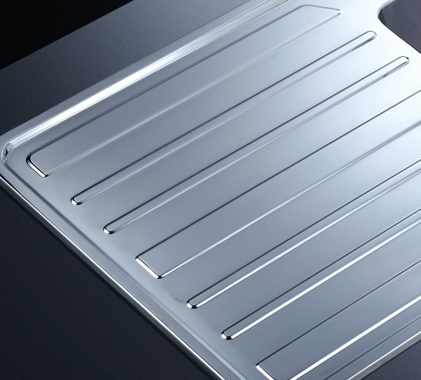 阿發水槽立邊采用國際先進的10-25°小R角一次成型拉伸技術,更具立體感與時尚潮流,亦能充分擴展水槽利用空間;一次成型拉伸技術,杜絕了焊接工藝易產生的水槽生銹,脫焊事故,充分保障水槽50年以上的使用壽命
