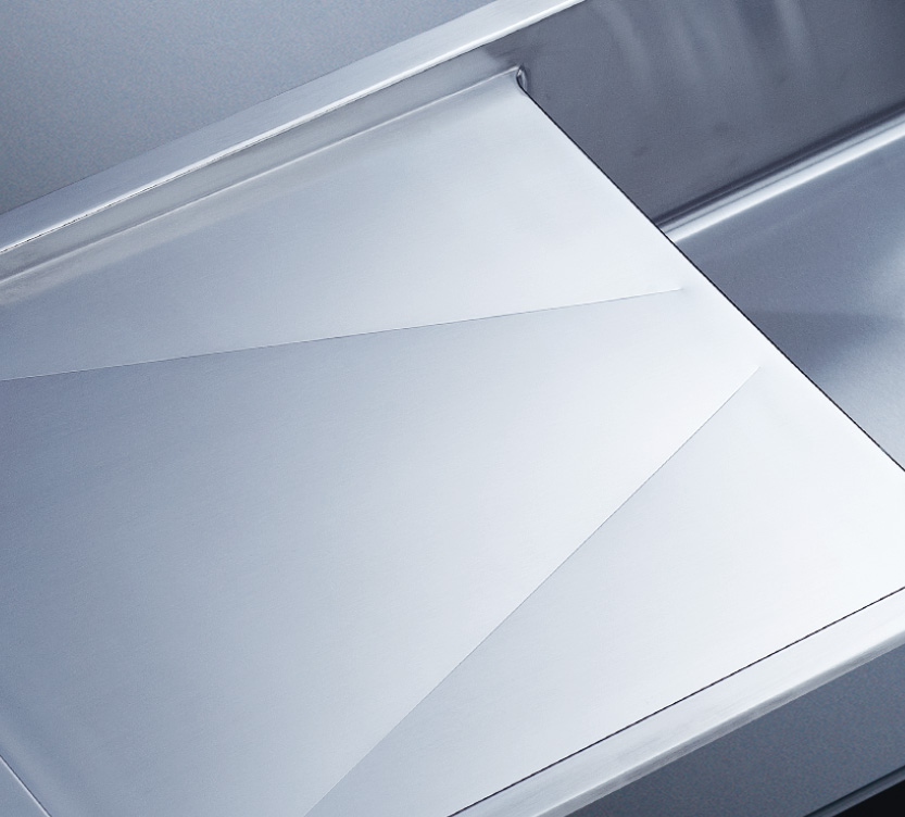 槽底采用斜面壓痕,四輻導流槽設計,與平面壓痕和無痕水槽相比,導水更為流暢,下水更迅速,能有效防止積水,消除沉淀物