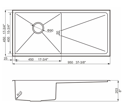 阿發水槽立邊采用國際先進的10-25°小R角一次成型拉伸技術,更具立體感與時尚潮流,亦能充分擴展水槽利用空間;一次成型拉伸技術,杜絕了焊接工藝易產生的水槽生銹,脫焊事故,充分保障水槽50年以上的使用壽命